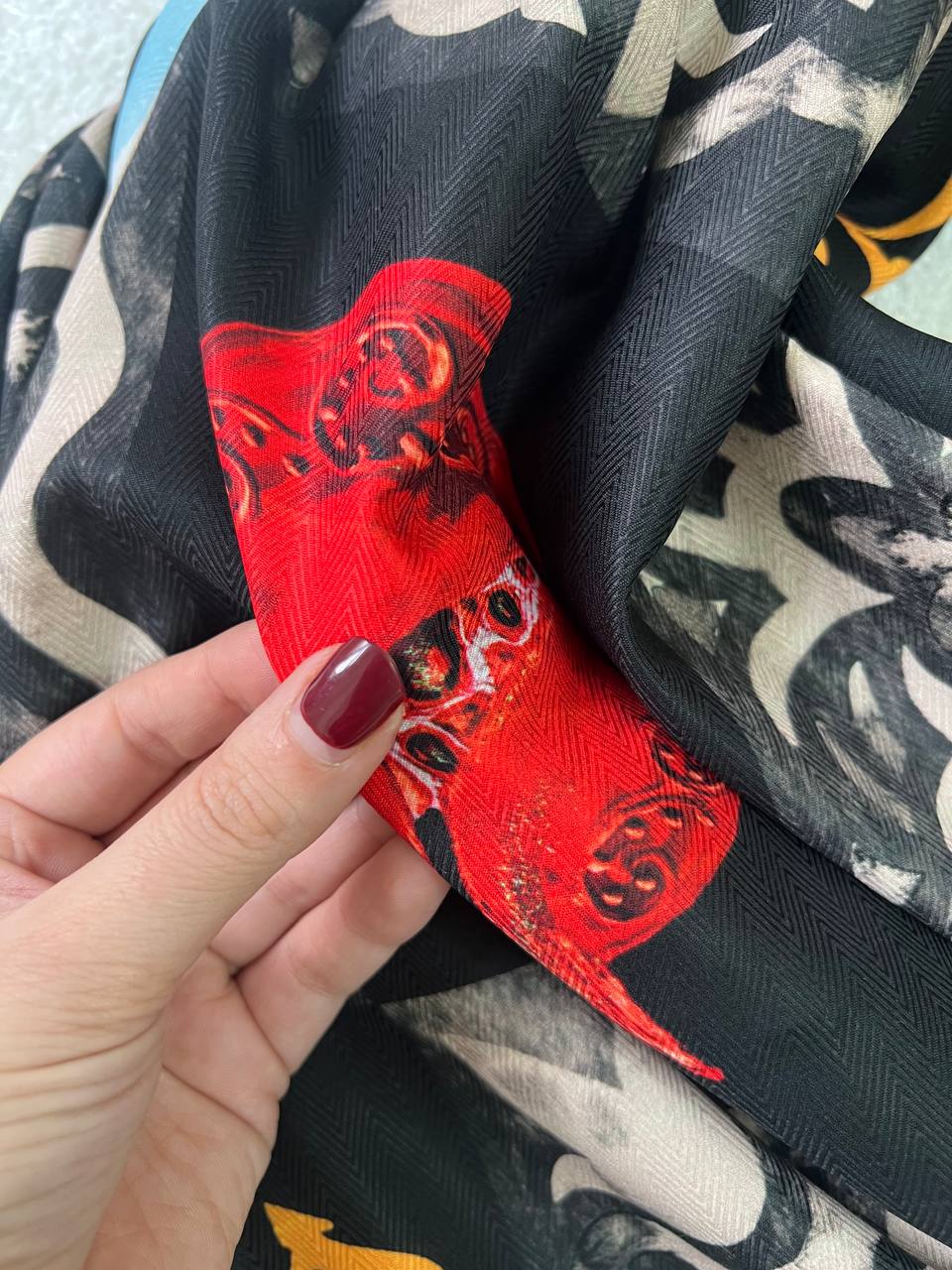 این روسری از ترکیب رنگ‌های زیبایی تشکیل شده که با توجه به جنس آن که از نخ با کیفیت بالا می‌باشد، لیز نمی‌خورد و به خاطر سبک بودن آن بسیار برای خانم‌های سخت پسند مناسب می‌باشد