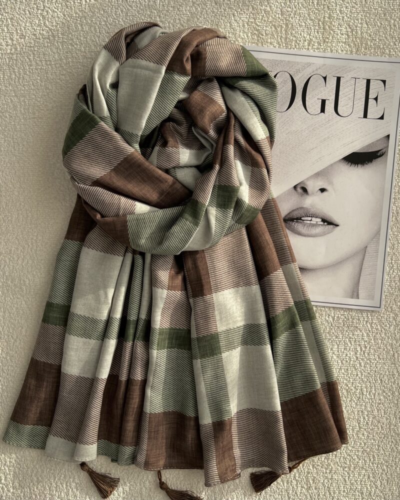 این شال از ترکیب رنگ‌های زیبایی تشکیل شده که با توجه به جنس آن که از نخ با کیفیت بالا می‌باشد، لیز نمی‌خورد و به خاطر سبک بودن آن بسیار برای خانم‌های سخت پسند مناسب می‌باشد