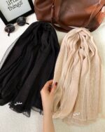 این شال ازرنگهای زیبایی تشکیل شده که با توجه به جنس آن که از نخ با کیفیت میباشد، لیز نمیخورد بسیار برای خانمهای سخت پسند مناسب است